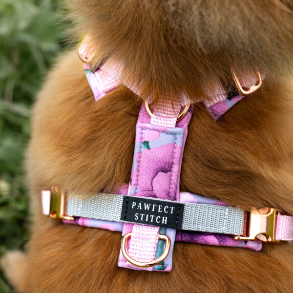 Standardmässig wird das Geschirr mit Kunststoffschnallen und -schiebern sowie Ringen aus Edelstahl gefertigt – robust, leicht und perfekt für den Alltag.